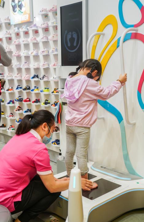 那么,怎樣才能選到合適的護足兒童鞋和足弓承托墊呢?建議借助江博士研發的“3D智能驗腳儀”黑科技。江博士線下門店均設置有3D智能驗腳儀,為4歲及29碼以上的孩子提供免費驗腳配墊服務。該驗腳儀內置多部深度相機,讀取并分析孩子的各項足部數據,能在掌握孩子雙足情況下,全方位判斷孩子的足部發育情況,選擇最適合的鞋墊、鞋子,同時提出適合足部發育的運動建議。